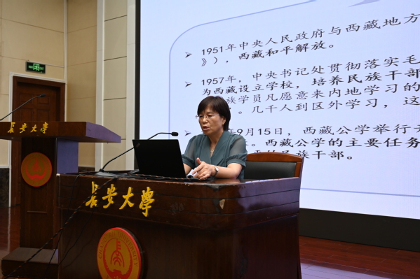 西藏民族大學圖書館館長孔繁秀研究館員作報告