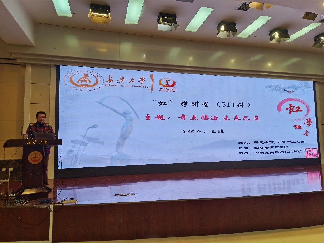 11月23日晚,由研究生院/研究生工作部主辦、經濟與管理學院承辦、校研究生科學技術協會協辦的“虹”學講堂第511講在南校區北院學術交流中心舉辦。長安大學王非教授作題為“奇點臨近 未來已至”的報告,相關學院共200余名師生參加講座。