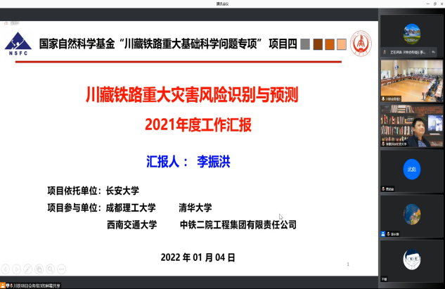 我校彭建兵院士作為項目咨詢專家出席會議,地測學院院長李振洪教授作為重大專項項目四的首席科學家線上參加會議并做了項目進展匯報,成都理工大學許強教授、長安大學蘭恒星教授和清華大學傅旭東教授出席會議做了項目四的亮點成果匯報。會上,李振洪匯報了2021年度項目四的主要成績,總結了項目四對川藏鐵路工程規劃和建設階段的支撐作用,并介紹了2022年項目四的重點工作。