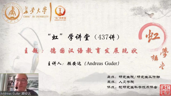 3月27日晚,由研究生院/研究生工作部主辦、人文學院承辦、校研究生科學技術(shù)協(xié)會協(xié)辦的“虹”學講堂第437講以線上講座形式順利舉辦。柏林自由大學顧安達(AndreasGuder)教授作了題為“德國漢語教育發(fā)展現(xiàn)狀”的報告,相關(guān)學院共300余名師生參加講座。