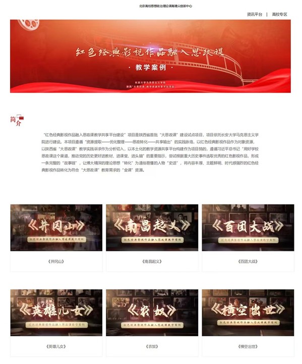 近日,由長安大學(xué)馬克思主義學(xué)院推出的“紅色經(jīng)典影視作品融入思政課教學(xué)”案例庫,正式上線北京高校思想政治理論課高精尖創(chuàng)新中心平臺。