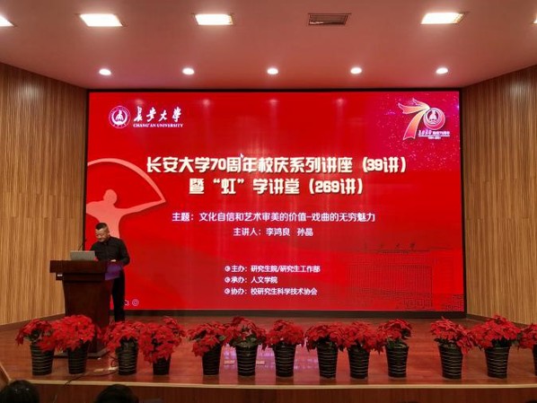 3月19日上午,由研究生院/研究生工作部主辦、人文學院承辦、校研究生科學技術協會協辦的長安大學70周年校慶系列講座(39講)暨“虹”學講堂(269講)在南校區東院伯聲報告廳順利舉辦。著名昆曲表演藝術家李鴻良、孫晶作了題為“文化自信和藝術審美的價值——戲曲的無窮魅力”的報告,我校相關學院共計210余名師生參加了此次講座。