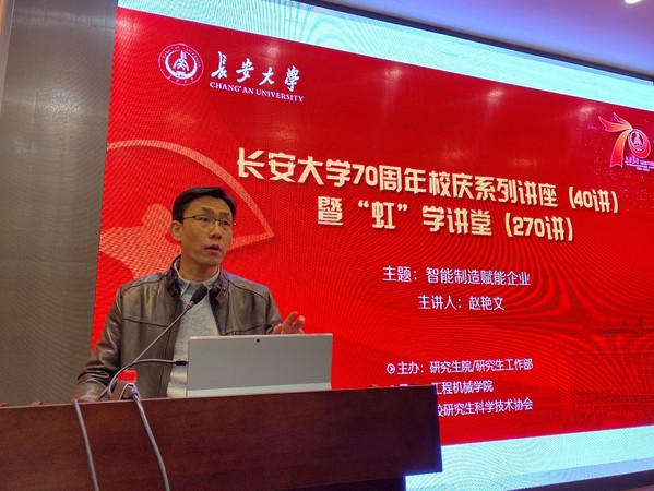 3月20日晚,由研究生院/研究生工作部主辦、工程機械學院承辦、校研究生科學技術協會協辦的長安大學70周年校慶系列講座(40講)暨“虹”學講堂(270講)在南校區東院伯聲報告廳順利舉辦。陜西法士特汽車傳動集團有限責任公司副總經理、我校2008屆工程機械學院畢業生趙艷文作了題為“智能制造賦能企業”的報告,我校相關學院共計220余名師生參加了此次講座。
