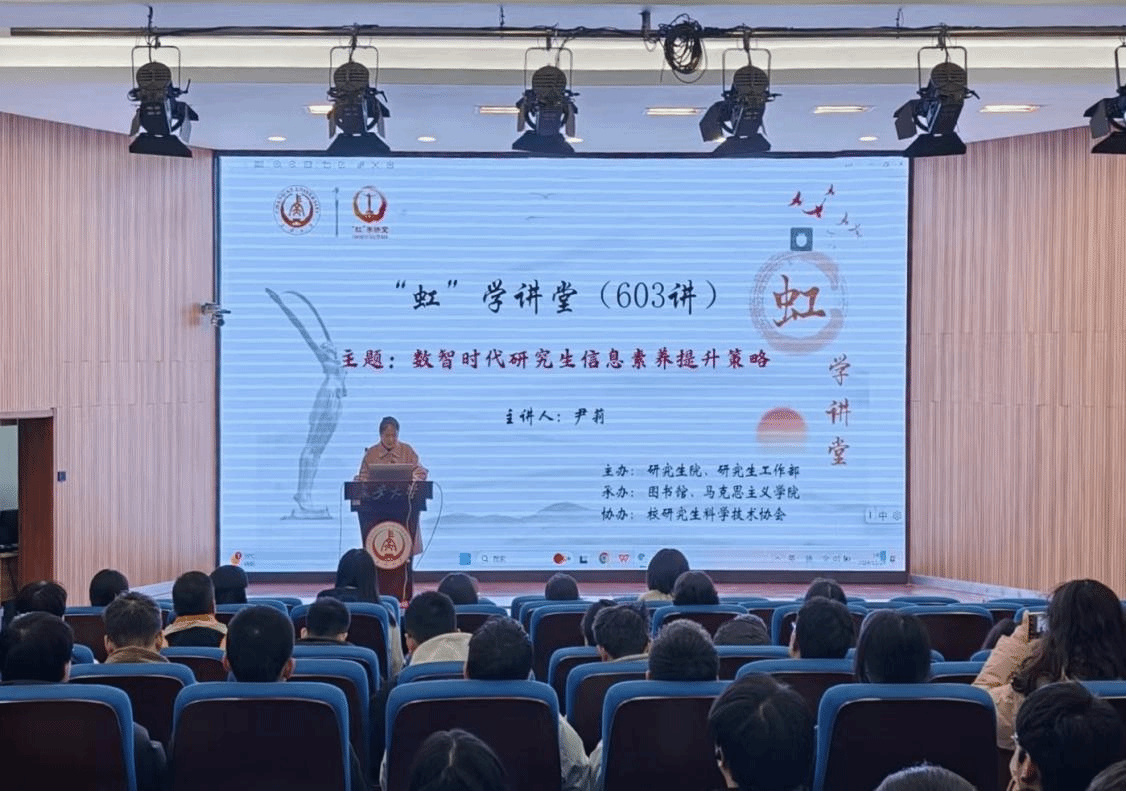 11月28日下午,由研究生院、研究生工作部主辦,圖書館、馬克思主義學院承辦,校研究生科學技術協會協辦的“虹”學講堂第603講在南校區東院伯聲報告廳舉辦。長安大學圖書館尹莉研究館員作題為“數智時代研究生信息素養提升策略”的報告,相關學院共130余名師生參加講座。