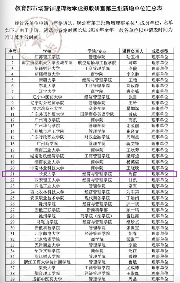 近日,教育部市場營銷課程教學虛擬教研室正式公布了第三批理事單位名單,我校市場營銷學課程經過遴選加入了教育部市場營銷課程教學虛擬教研室,成為理事單位。該虛擬教研室是目前獲批教育部的全國唯一國家級市場營銷課程教學虛擬教研室,致力于促進優質教學資源共享,實現跨地域、跨學科的深度合作與交流。