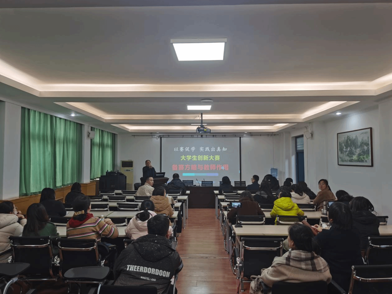 12月18日下午,教務處、創新創業學院會同人文學院在人文學院報告廳舉辦以“以賽促學 實踐出真知—大學生創新大賽備賽方略與指導老師作用發揮”為主題的專項培訓研討會,邀請教育部全國萬名優秀創新創業導師張偉擔任主講嘉賓,人文學院副院長常莉主持報告會,人文學院創新創業導師及部分師生參加講座。