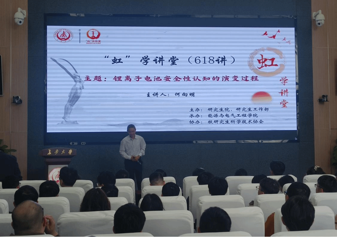 3月26日上午,由研究生院、研究生工作部主辦,能源與電氣工程學院承辦,校研究生科學技術協會協辦的“虹”學講堂第618講在北校區師生服務大廳第二報告廳舉辦。清華大學何向明教授作題為“鋰離子電池安全性認知的演變過程”的報告,相關學院共150余名師生參加講座。