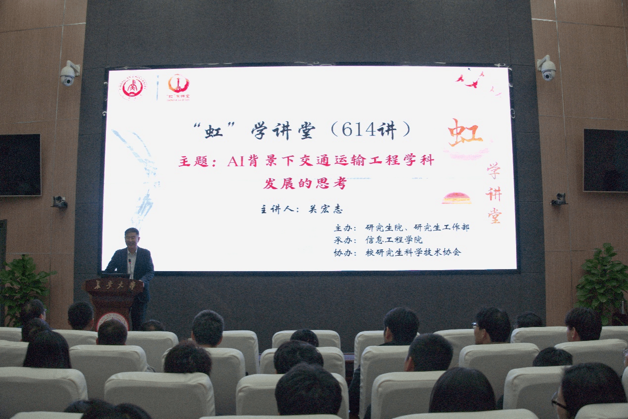 3月14日下午,由研究生院、研究生工作部主辦,信息工程學院承辦,校研究生科學技術協會協辦的“虹”學講堂第614講在北校區師生服務大廳第二報告廳舉辦。北京工業大學關宏志教授作題為“AI背景下交通運輸工程學科發展的思考”的報告,信息工程學院黨委副書記郭詠梅主持報告會,相關學院共160余名師生參加講座。