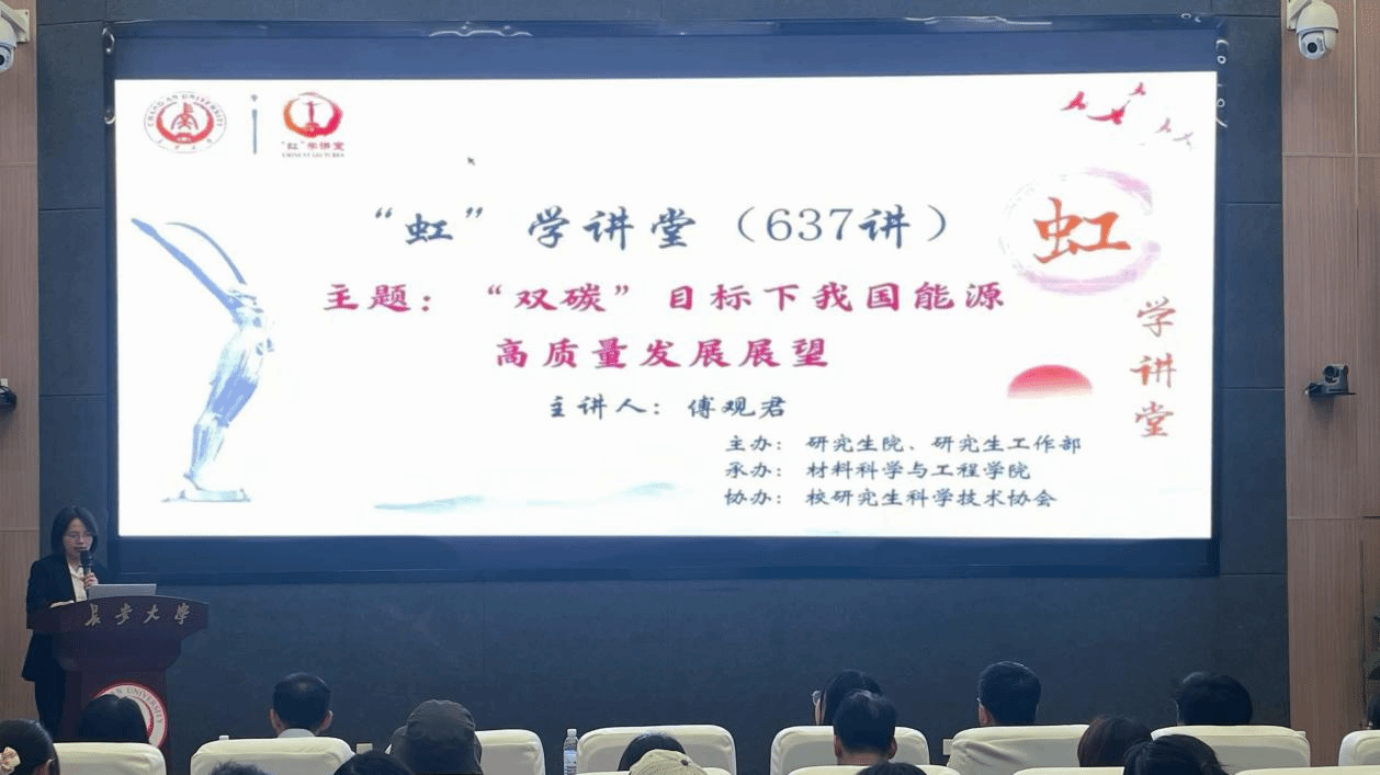 4月29日下午,由研究生院、研究生工作部主辦,材料科學與工程學院承辦,校研究生科學技術協會協辦的“虹”學講堂第637講在北校區師生服務大廳第二報告廳舉辦。傅觀君工程師作題為“雙碳目標下我國能源高質量發展展望”的報告,材料科學與工程學院副院長郭亞杰主持報告會,相關學院共160余名師生參加講座。