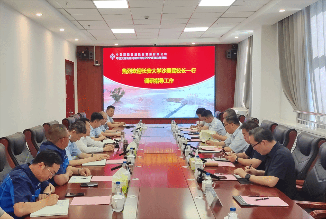 8月8日至10日,校長沙愛民、副校長陳建勛一行赴新疆開展合作交流與實地調研。8月8日,沙愛民一行到中國交建新疆烏尉公路包PPP項目總經理部進行座談。中交新疆交通投資發展有限公司董事長、總經理、中國交建新疆烏尉公路包PPP項目黨委書記崔景川主持座談會。崔景川對沙愛民一行來公司調研表示誠摯歡迎,他介紹了烏尉公路項目進展以及與學校聯合開展科研項目情況,他表示,雙方在特殊地區交通與能源融合、特長隧道建設管養等領域具有廣泛的合作基礎,...